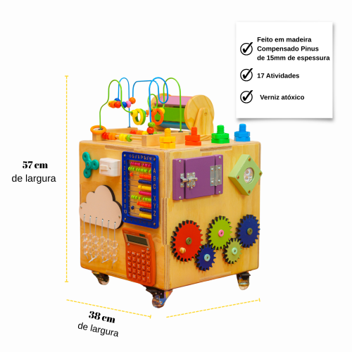 Cubo Sensorial Afeto 38x57cm com 17 atividades