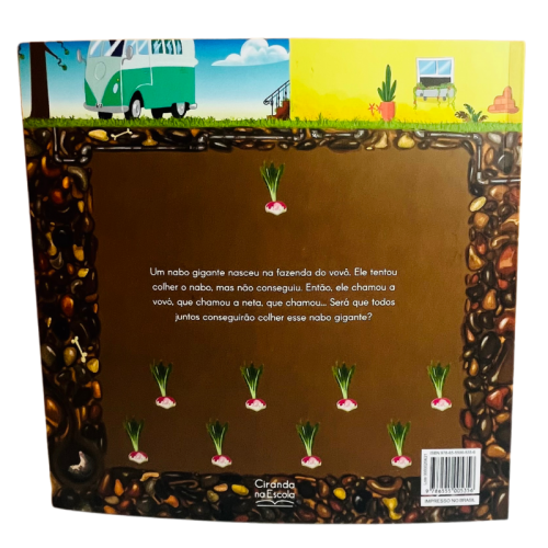Um nabo gigante nasceu na fazenda do vovô. Ele tentou colher o nabo, mas não conseguiu. Então, ele chamou a vovó, que chamou a neta, que chamou… Será que todos juntos conseguirão colher esse nabo fresquinho? Divirta-se com esse conto clássico cumulativo, escrito por Aleksei Tolstói e traduzido diretamente do russo por Yuri Martins. Este livro da Editora Ciranda Cultural é uma leitura encantadora para crianças a partir de 4 anos, ilustrado por Junior Caramez, que valoriza a cooperação e a união.