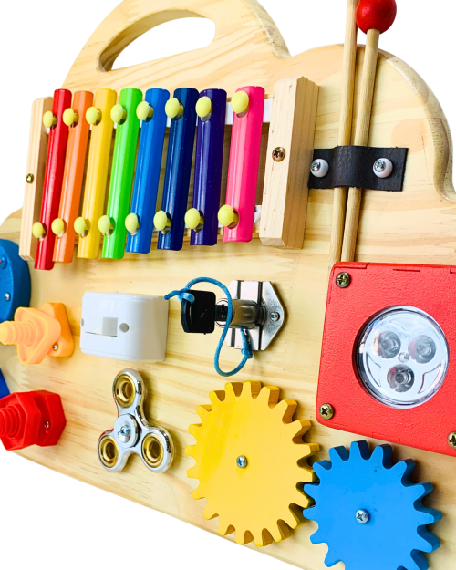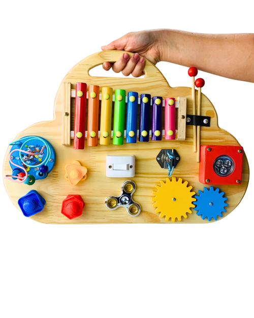O nosso painel sensorial é um brinquedo interativo com diferentes estímulos que contribui para o desenvolvimento afetivo, cognitivo e psicomotor das crianças.