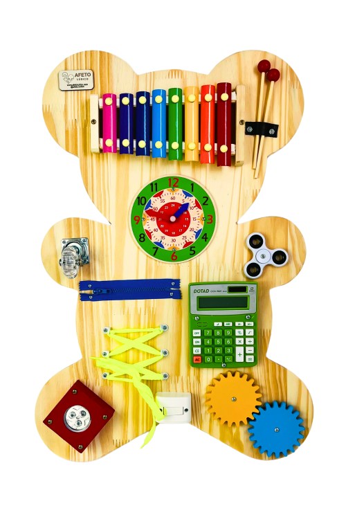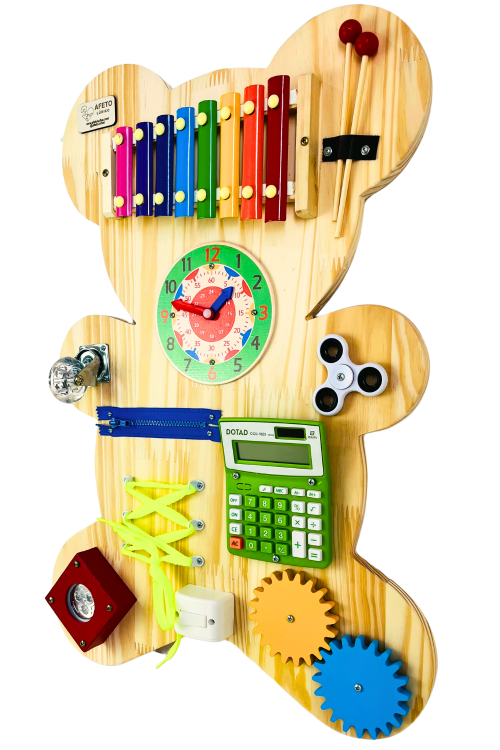 O Painel de Atividades Educativas Modelo Urso foi desenvolvido para estimular o desenvolvimento motor, sensorial e cognitivo das crianças de forma lúdica e interativa.