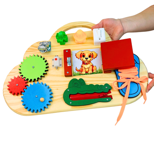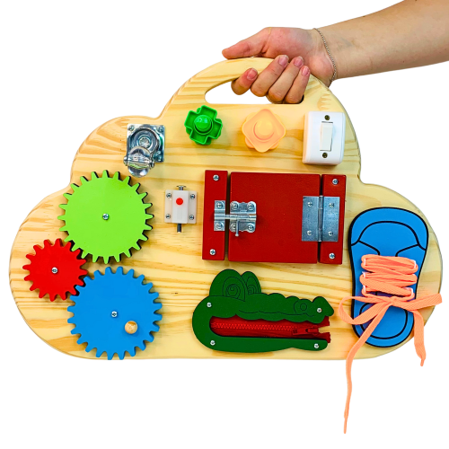 O Painel Sensorial Nuvem Portátil é um brinquedo educativo artesanal desenvolvido para proporcionar estímulos essenciais ao desenvolvimento infantil. Compacto, leve e funcional, ele pode ser levado para qualquer ambiente — ideal para salas de espera, clínicas, quartos e brinquedotecas.