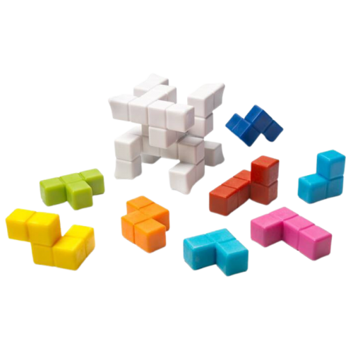 -Com 8 peças de quebra-cabeça coloridas, este cubo oferece mais de cinquenta maneiras de ser montado.