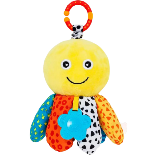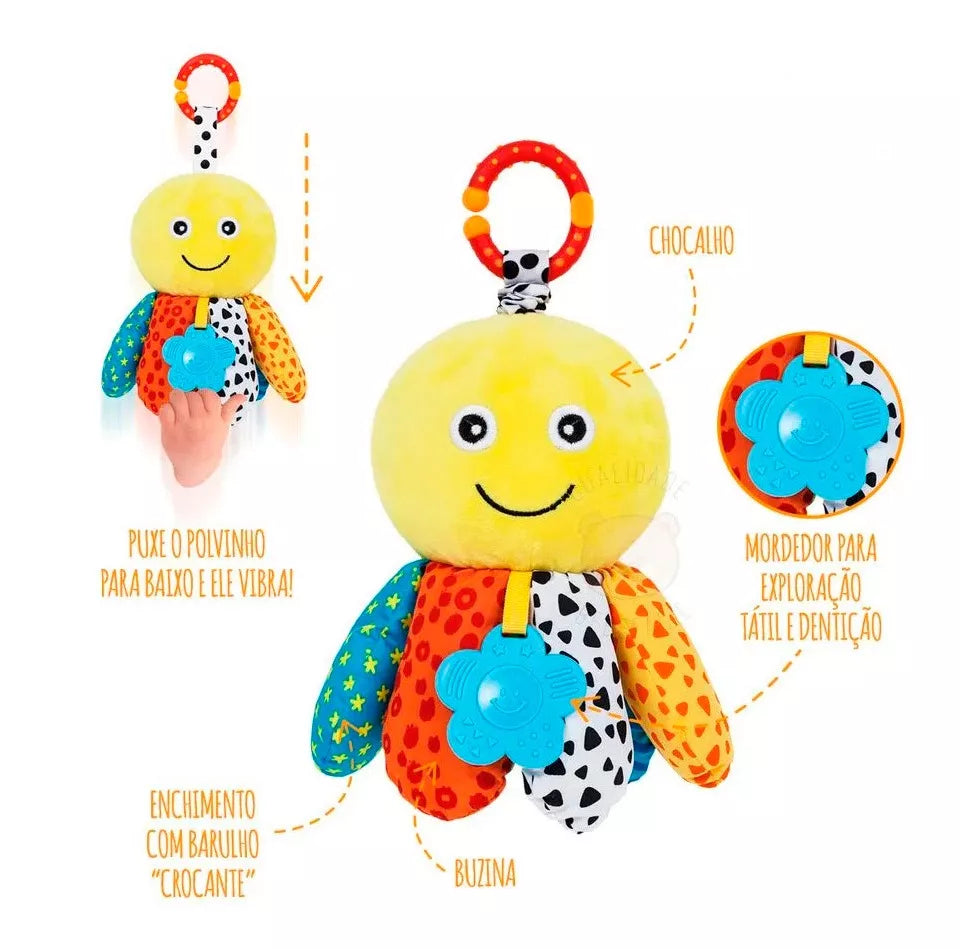 - Multifuncional: Mordedor, chocalhos, som de amassadinho e treme-treme.