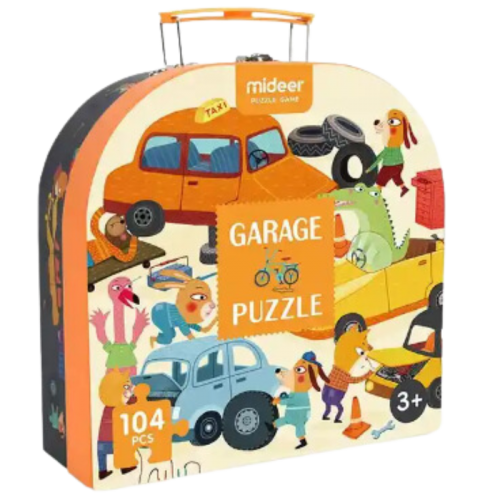 Apresentamos o Quebra-Cabeça Portátil – Oficina Mecânica dos Animais da série Portable Puzzle Box.