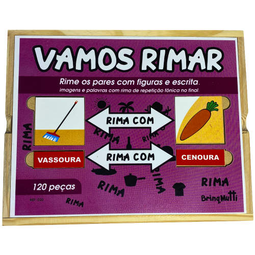 Um jogo educativo divertido que estimula a consciência fonológica e o desenvolvimento da linguagem por meio de rimas. As crianças associam figuras que rimam, nomeando-as e aprendendo enquanto brincam. Ideal para trabalhar vocabulário, atenção e coordenação.